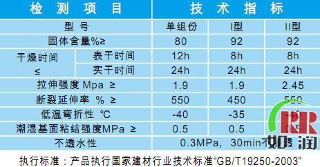 3、施工用量约在2.5kg/m2,分2-3次涂刷,时间间隔以手触不粘为准,涂膜厚度一般为1.5-2mm,可根据施工部位的防水要求做适当调整;